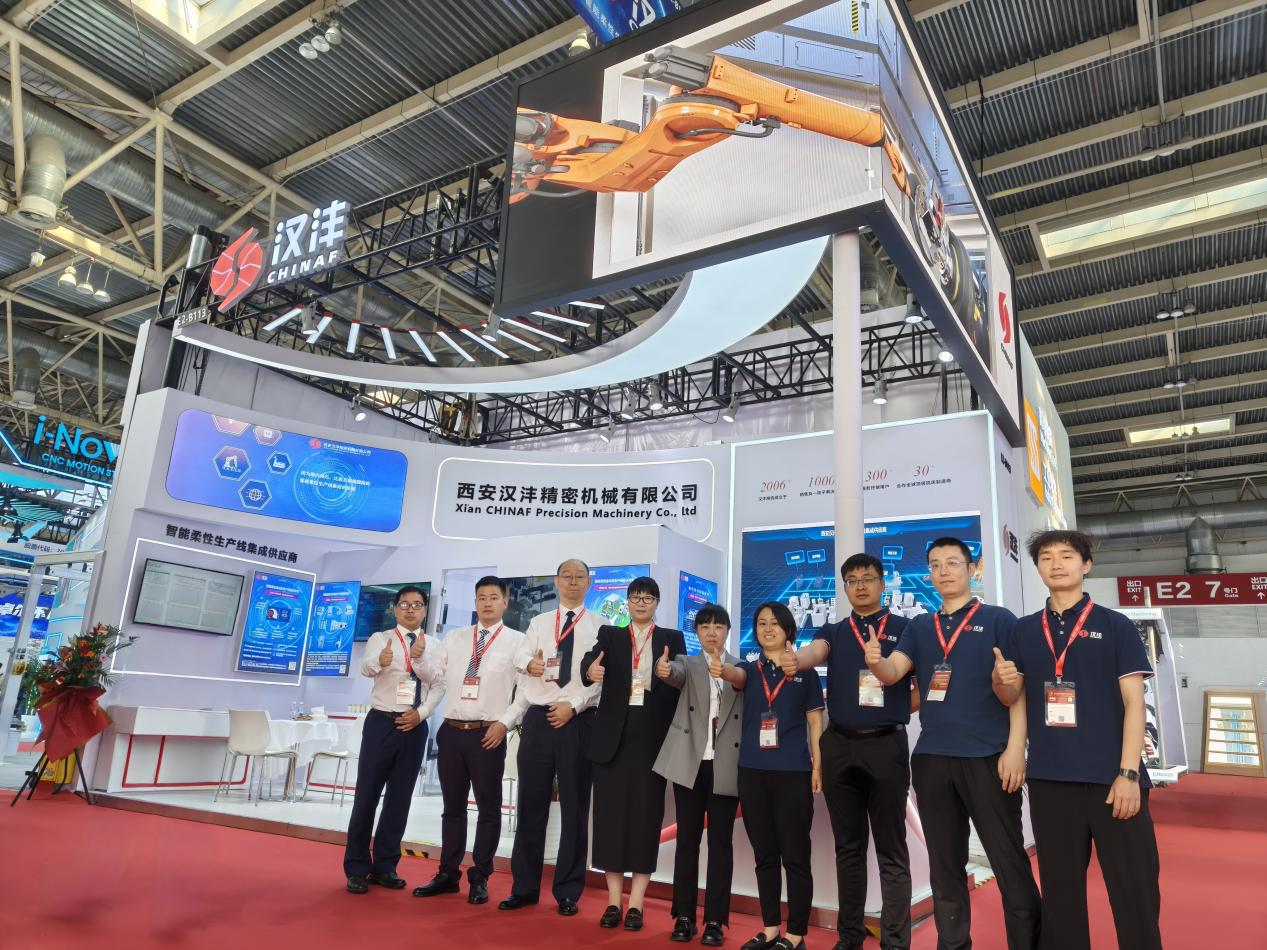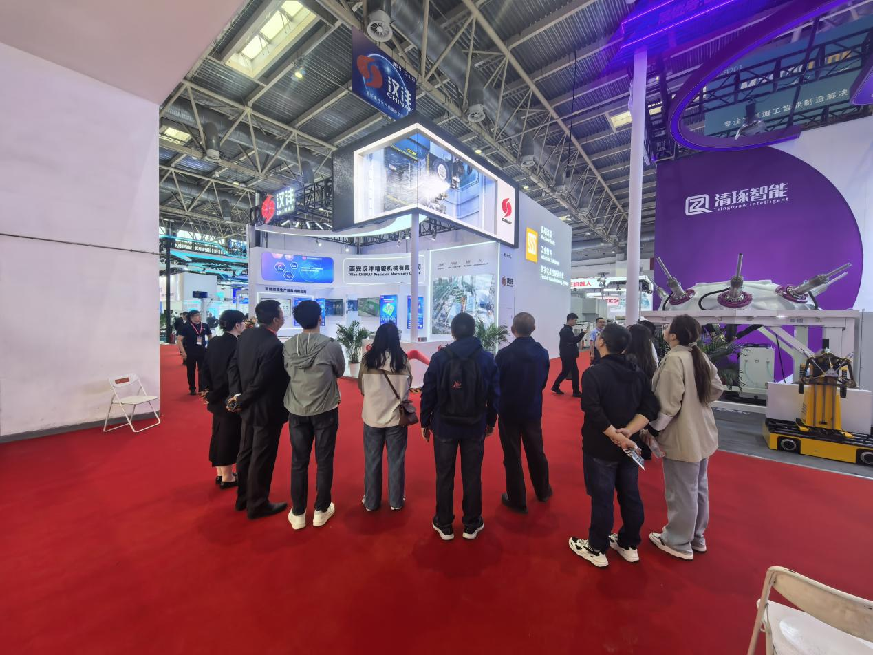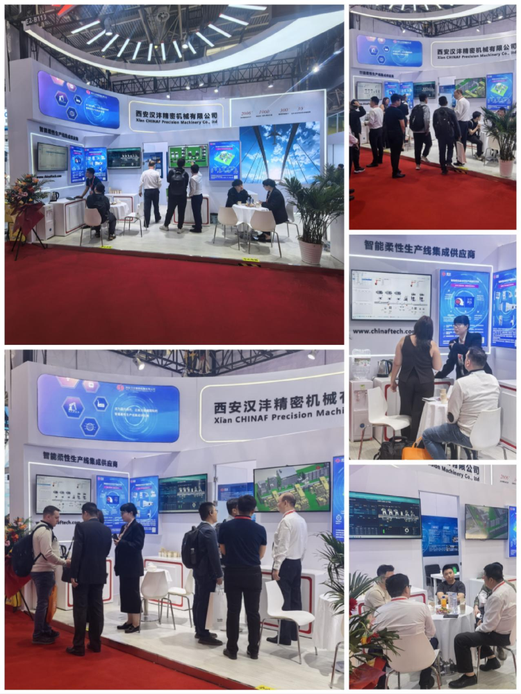 西安汉沣精密机械有限公司(以下简称:汉沣精机)携智能柔性自动化生产线解决方案(涉及到柔性单元、柔性生产线、数字车间、智能工厂);汉沣PCS管控系统(涉及到智能排产、智能调度、工艺管理、质量管理、物流管理、刀夹具管理、数据采集、自适应加工、全闭环反馈、3T集成等);运用赛博物理CPS技术,通过构建数字孪生等手段,实现物理世界与数字世界的深度融合,解决可靠性、节拍效率、实施效率等关键问题提升制造系统的智能化水平;自动换刀技术展示(车削换刀、铣削换刀、电加工换电极等);自动换装机构及预装预调台、多结构类型清洗系统、离线式激光测量机技术、专用夹具技术等。以全新的面貌、非凡的实力和卓越的产品,成功吸引了无数专业人士的目光,成为展会上一颗璀璨的明星。