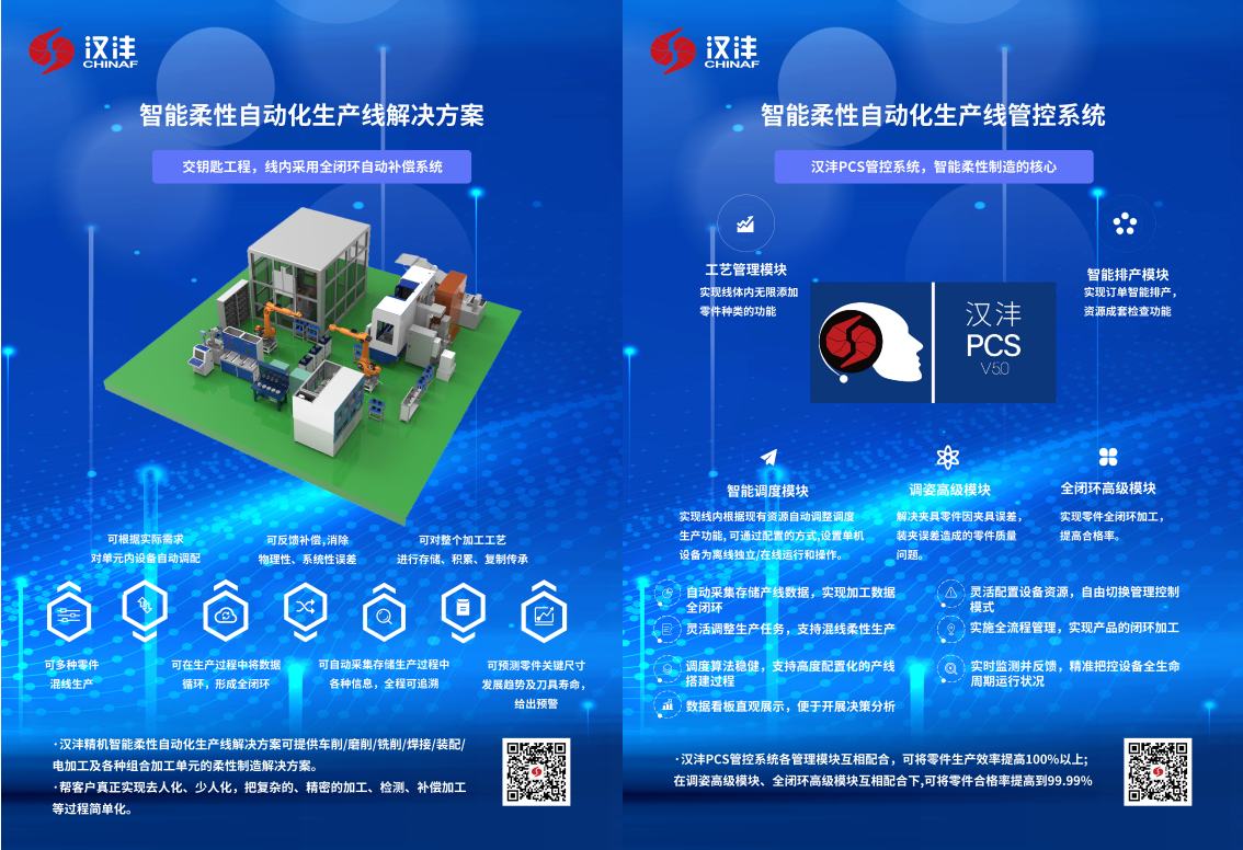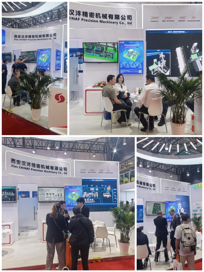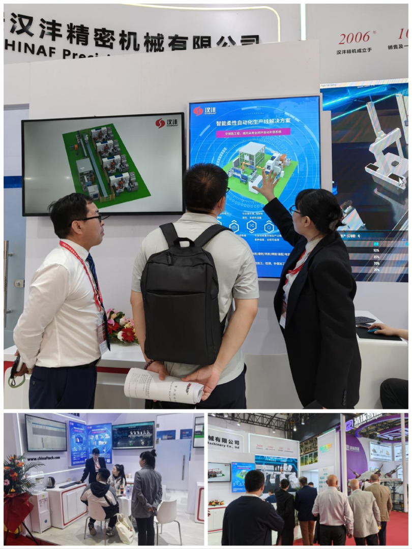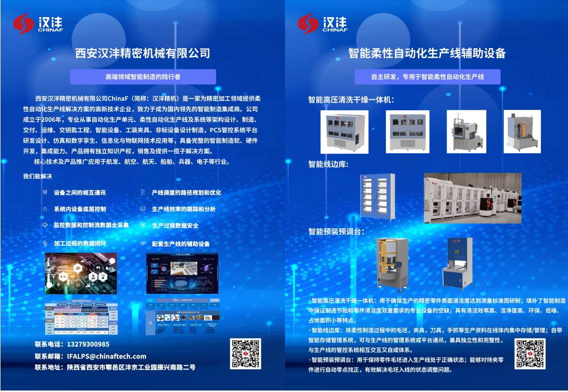 西安汉沣精密机械有限公司(以下简称:汉沣精机)携智能柔性自动化生产线解决方案(涉及到柔性单元、柔性生产线、数字车间、智能工厂);汉沣PCS管控系统(涉及到智能排产、智能调度、工艺管理、质量管理、物流管理、刀夹具管理、数据采集、自适应加工、全闭环反馈、3T集成等);运用赛博物理CPS技术,通过构建数字孪生等手段,实现物理世界与数字世界的深度融合,解决可靠性、节拍效率、实施效率等关键问题提升制造系统的智能化水平;自动换刀技术展示(车削换刀、铣削换刀、电加工换电极等);自动换装机构及预装预调台、多结构类型清洗系统、离线式激光测量机技术、专用夹具技术等。以全新的面貌、非凡的实力和卓越的产品,成功吸引了无数专业人士的目光,成为展会上一颗璀璨的明星。